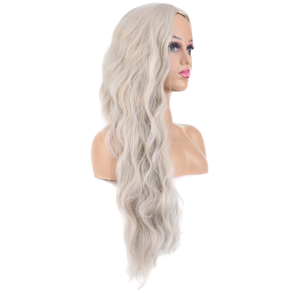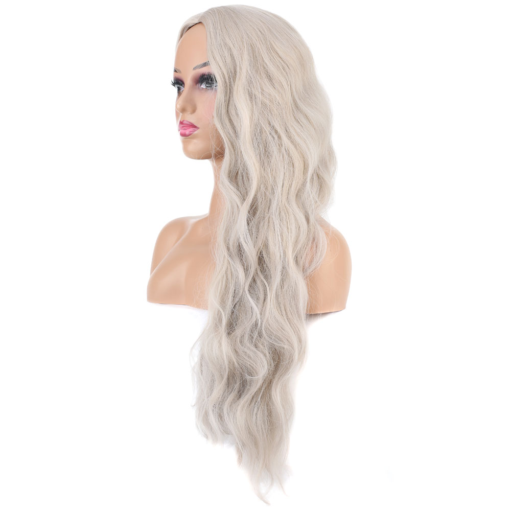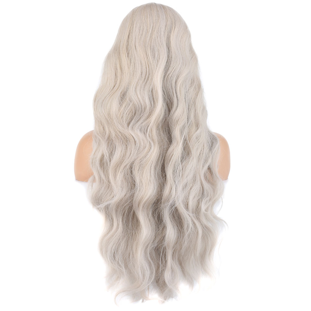 Uzun Su Dalgası Fiber Sentetik Peruk – Küllü Beyaz